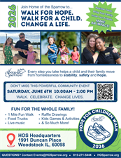 Home of the Sparrow (HOS) will host its inaugural Hope for Children Walk on Saturday, June 6, 2026, at its headquarters in Woodstock. This family-friendly fundraising event brings the community together to raise awareness and critical support for women, children, and individuals experiencing homelessness across McHenry County and beyond.