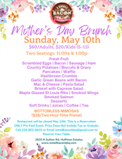 Mother's Day Brunch Mother's Day Brunch Set a Reminder Enter your email address below to receive a reminder message. Email address Select the amount of Days before the event -- Select Days Before Event -- 1 Day 2 Days 3 Days 1 Week Captcha Validation Please complete the Captcha Submit Date and Time Sunday May 10, 2026 11:00 AM - 3:00 PM CDT Set a Reminder Enter your email address below to receive a reminder message. Email address Select the amount of Days before the event -- Select Days Before Event -- 1 Day 2 Days 3 Days 1 Week Captcha Validation Please complete the Captcha Submit Share × Print Email Add to Calendar Facebook Twitter LinkedIn Tell a Friend × Select Calendar Type × Google Yahoo iCal (Outlook, Apple, or other) BACC Offices 190 E. James Street Barrington, IL 60010 Tel: (847) 381-2525